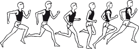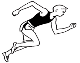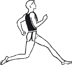 Голова закинута назад, потому что бегун смотрит в направлении финиша – спина прогибается.