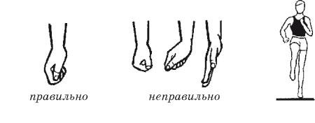 руки, согнутые в локтях, энергично работают вперед-назад (не наискось, не поперек тела);