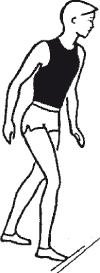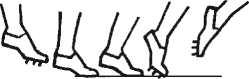 находящаяся сзади нога делает первый шаг и касается грунта кратчайшим путем;