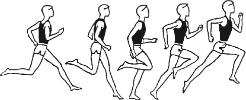бег должен быть ритмичным и свободным, с расслаблением и небольшим наклоном туловища вперед;