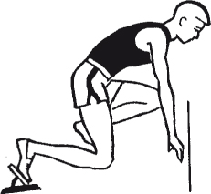 толчковую (сильнейшую) ногу поставить на переднюю колодку, более слабую ногу поставить на заднюю колодку;
