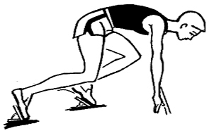 сильнейшую ногу поставить вплотную к стартовой линии;