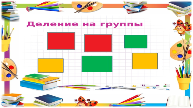 Цветные кубики получают учащиеся и делятся на 2 группы в соответствии со цветом. |