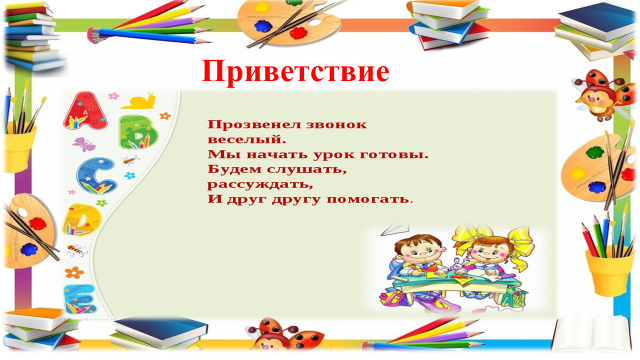 1.Приветствие, организация Создание психологического климата Приветствуя ребят, ребята друг другу дарят хорошее настроение.
