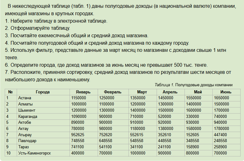 Читать п.3.5 Создать БД В столбец Е внести формулы В строке 10 внести формулы Выполнить фильтрацию (условие выбрать самим) Отправить скрин |