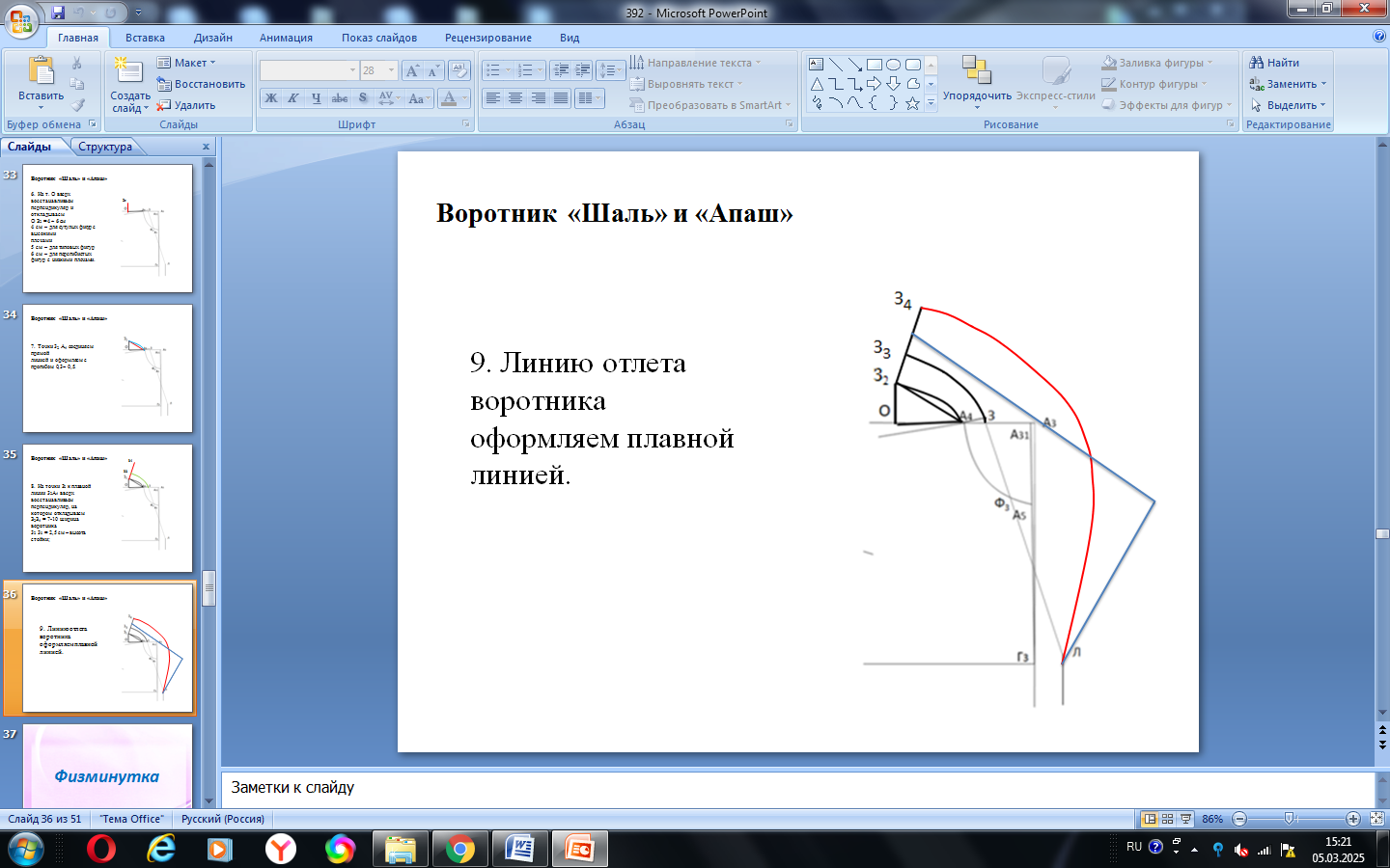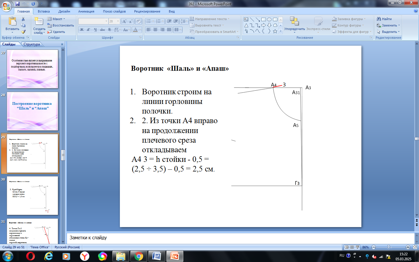 Тема занятия: Расчет и построение чертежей воротников шаль и апаш