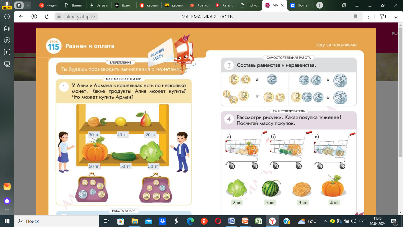- Какие продукты она может купить? - Что может купить Арман? Взаимопроверка «Карусель» Зад.2. Составьте равенства и неравенства.