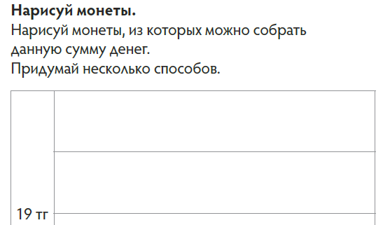 1.1.3.6 производить различные операции с монетами 1 тг, 2 тг, 5 тг, 10 тг, 20 тг 1.5.1.2 использовать понятия, которые применяются при сравнении чисел, предметов, цены товара. |