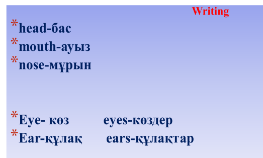 Students should say what they learned at this lesson. Home task: learn the body parts and spelling |