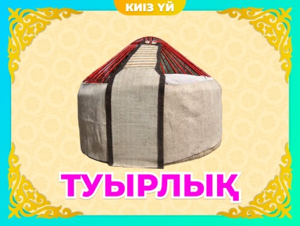 Шарты: Қоржынның ішінен киіз үйдің бөліктері шығу, балалар бөліктерді біріктіру арқылы киіз үйді шығару. Киіз үйдің құрлысын атау. Киіз үй туралы сұраққа жауап.