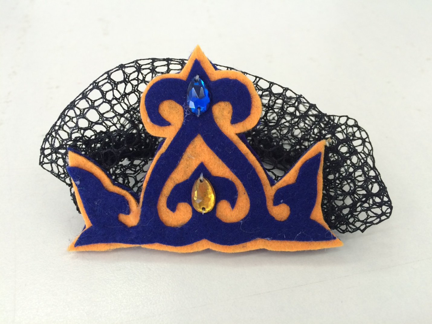 Қазақи нақыштағы шаш жинағыштары. (Ободок) Бұларды жасауда қолданылған ою-өрнек түрлері: Қошқар мүйіз элементтері және құсқанаты оюының элементтері пайдаланылған.Пішіндері 8бұрыш және қошқар мүйіз.