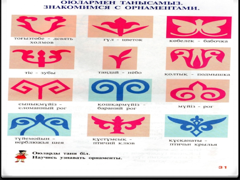өрнектің мазмұнында терең мағына жатыр. Ою – өрнекке қарап отырып,