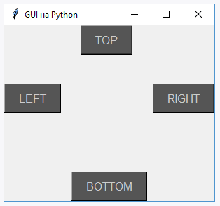 side:виджетті контейнердің бір жағына туралайды. Ол келесі мәндерді қабылдауы мүмкін: TOP (әдепкі бойынша, контейнердің жоғарғы жағымен тураланады), BOTTOM (төменгі жағы бойынша туралау), LEFT (сол жағымен туралау), RIGHT (оң жағымен туралау).