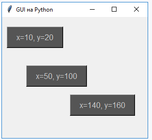 btn2 = Button(text="x=50, y=100", background="#555", foreground="#ccc", padx="14", pady="7", font="13")