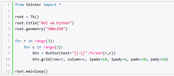 Мысалы, 9 батырмадан гридты анықтаймыз: