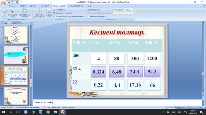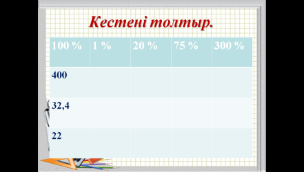 №8-сабақ Сабақтың тақырыбы:Пайызы бойынша санды табу. Есептер шығару