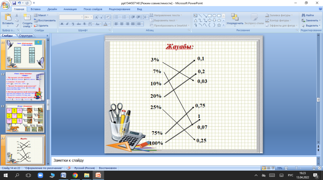 Рефлексия (Quzizz) Бағалау (Жапондық бағалау) Мақсаты:Оқушы алған білімін саралай білуге дағдыланады. Тиімділігі:Тақырып бойынша оқушылардың пікірін анықтайды. Жинақталған деректердің құнды болуын қадағалайды. Саралау: Бұл кезеңде саралаудың «Қорытынды» тәсілі көрінеді. Үй тапсырмасы №1149 (Микрокалькуляторды пайдаланып, санды табыңдар.) 127 бет |