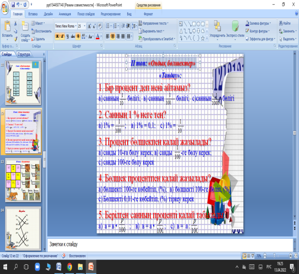 3- тапсырма III топ: «Проценттер» |