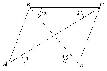 қасиет. Параллелограмның қарама-қарсы бұрыштары