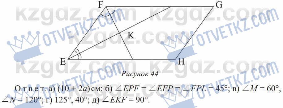 3. қарама-қарсы бұрыштары тең, көршілес бұрыштардың қосындысы 180° тең |