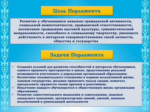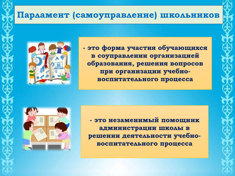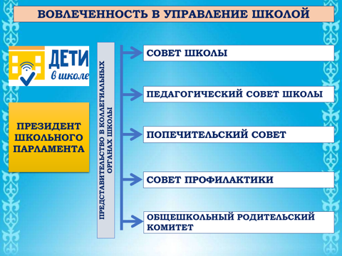 Формирует согласие между педагогическим коллективом и школьным парламентом;