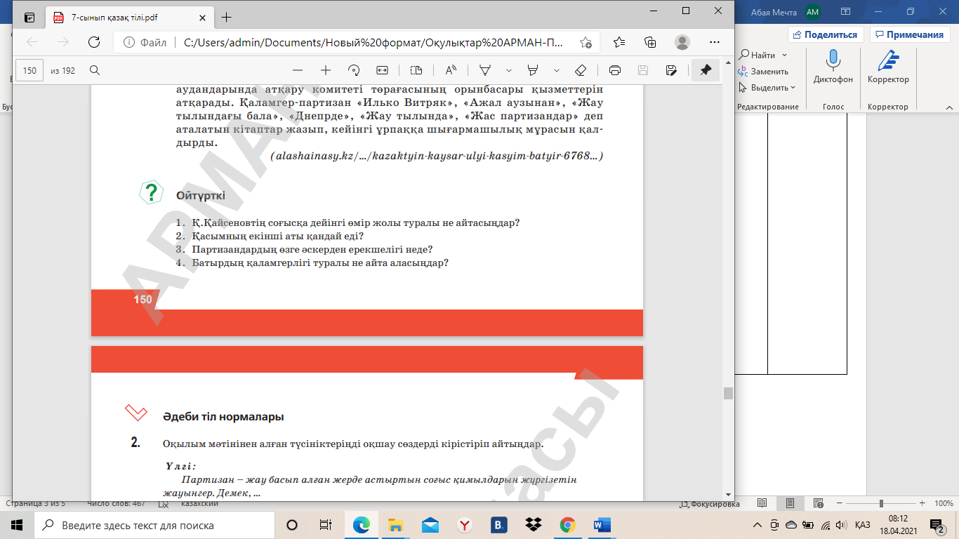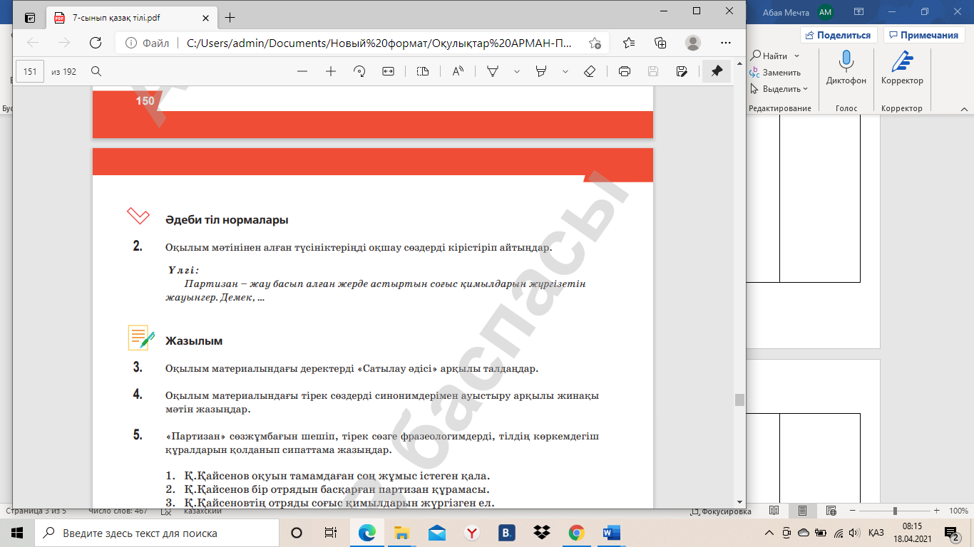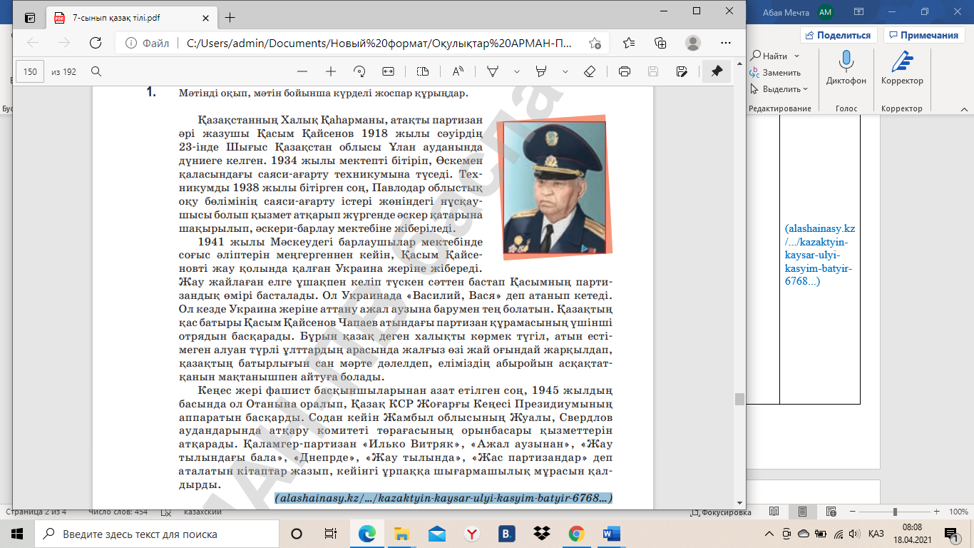 АЛДЫ. Оқылым мәтінімен танысып, сөзжұмбақты