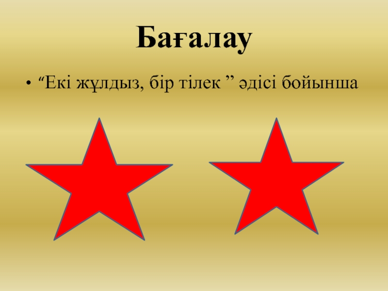 Оқушылар өздерінің бір күнгі өткен оқиғасын айтып шығады. Топтық жұмыс Оқушылар таныстырылым әзірлейді. Өзара пікір алмасады. Топта талқылай отырып, сұраққа кем дегенде екі аргумент келтіріңіз. Аргументтерге бағалау ұйымдастыра отырып, өзара пікір алмасыңыз. Әдеби эссе құрылымын сақтайды; Жазылым құрылымы жүйелі, қорытындыланған; Жеке көзқарасын аргументтей алады. |