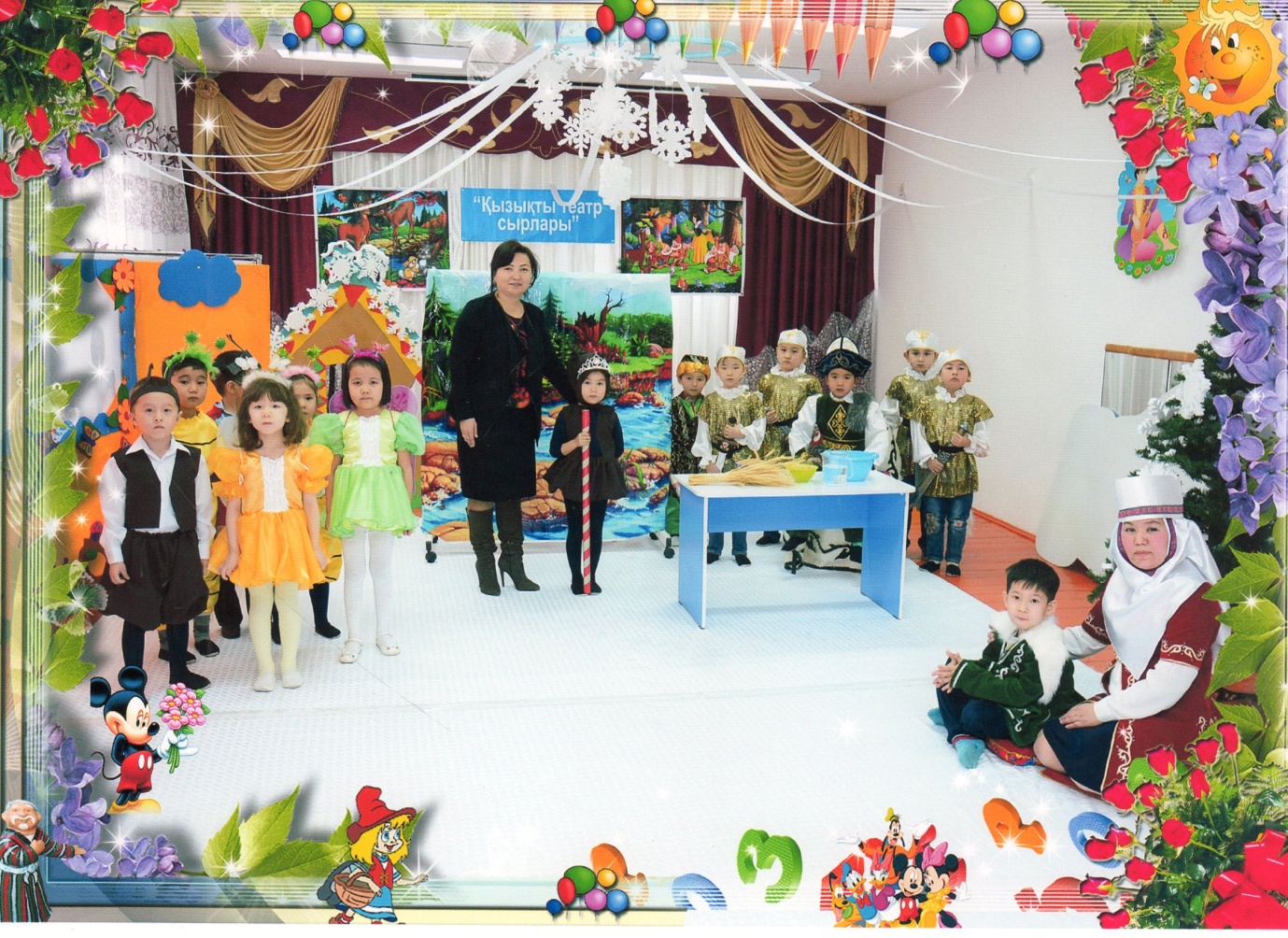 Мақсаты: Ертегі қойылым мазмұнын түсіне отырып, баланың мазмұнды сөйлеу тілін қалыптастыру, ролін атқара отырып, бір-бірімен қатынас жасай білуге, шығармашыл қиялын дамытуға ықпал ету, ертегі кейіпкерлерінің әрекетінің дұрыс-бұрысын ажырата білуге, жақсы қасиеттерді бойына сіңіріп, бірлік-татулық, ұйымшыл болуға тәрбиелеу.