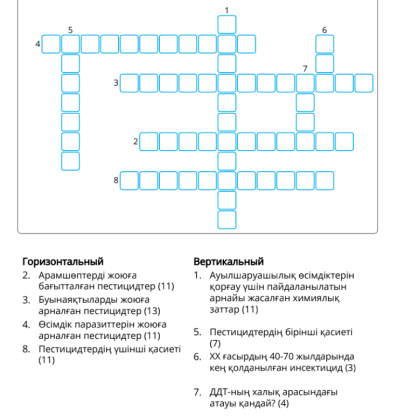 Білім алушылар жаңа сабаққа байланысты пестицид сөзіне топтастыру жасау арқылы пестицидтердің маңыздылығын екі жақты қарай алады, тақырыптың өзектілігін айқындап сабақ тақырыбы мен мақсатын анықтайды
