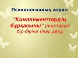 «Психологиялық ахуал орнату» «Комплименттердің бұрқасыны» әдісі арқылы оқушылар жұптасып бір- біріне сабаққа сәтілік тілеп,тілек айту