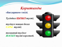 Кері байланыс: «Бағдаршам» әдісі Жасыл түс – жақсы түсіндім. Сары түс – сұрақтарым бар. Қызыл түс – түсініксіз болды.