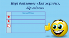 Рефлекция «Екі жұлдыз, бір тілек» әдісі Оқушылар сабақтағы екі жақсы нәрсені және бір жақсартуы қажет тұсты айтады.