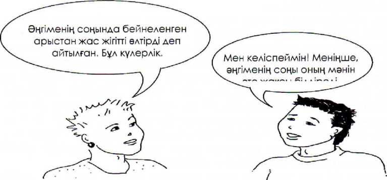 Төменде осы мысалды оқыған екі адамның әңгімесінің бөлігі берілген