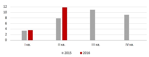 2015,2016 жылдарының қай тоқсанында туристер ағынының тепе-теңдігін көрсетті?