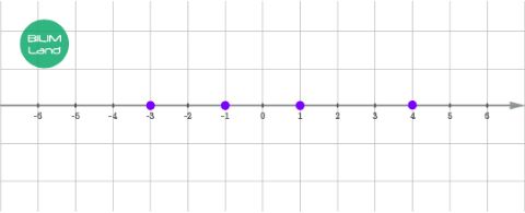 Екіншіден, координаттық түзуде бірлік кесіндіні қақпаға кірген бір доп деп аласың. «Достық» командасы соққан голдардың айырмасын анықтау үшін, санақ басынан оңға қарай 5 бірлік кесінді (қарсыласына соққан гол санын) санап, осы нүктеден солға қарай 7 бірлік кесінді (өз қақпасына жіберіп алған гол санын) санап, В4 нүктесімен белгілейсің. Сонда В4 нүктесінің координаты –2-ге тең болады. Осыдан «Достық» командасының голдар айырмасы –2-ге тең. Қалған командалардың голдар айырмасын осылай табасың.