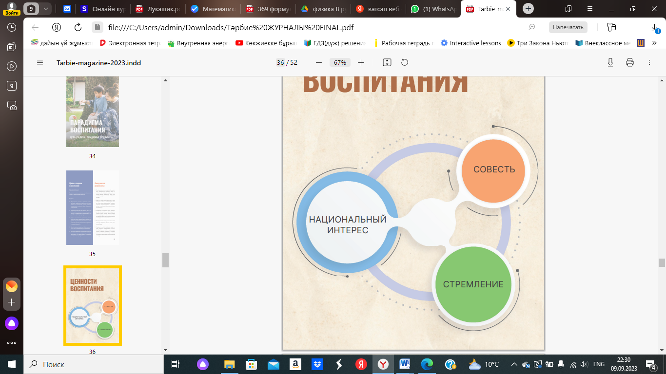 к ценностям «Национальных интерес», «Совесть», «Стремление» единой воспитательной программы
