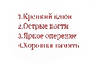 Дескриптор для 2-группы: -описывает почему крепкий клюв-1б Описывает почему острые когти-1б Описывает почему яркое оперение-1б Описывает почему хорошая память-1б Защита работы -1б
