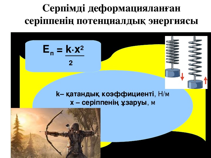 Потенциалдық энергия - .......................энергия. Деформацияланатын серіппенің потенциалдық энергиясы ...............пропорционал. |