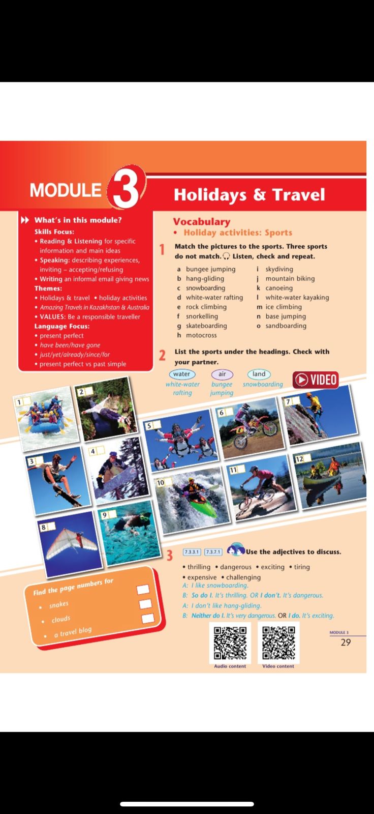Pupils will use vocabulary related to holiday activities and sports, along with adjectives to describe them (e.g., thrilling, dangerous, exciting, boring, expensive, challenging). |