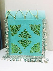 Учитель предлагает вырезанный на бумаге орнамент , которая находится в специальных сундучках. Она позволит учащимся осуществить самоанализ и дать оценку уроку. Зеленый орнамент – все понял Синий орнамент- были трудности в ходе урока. Красный орнамент- ничего не понял. Ребята берут соответствующий орнамент , записывают свои имена и относят в Коржын.( рефлексия)