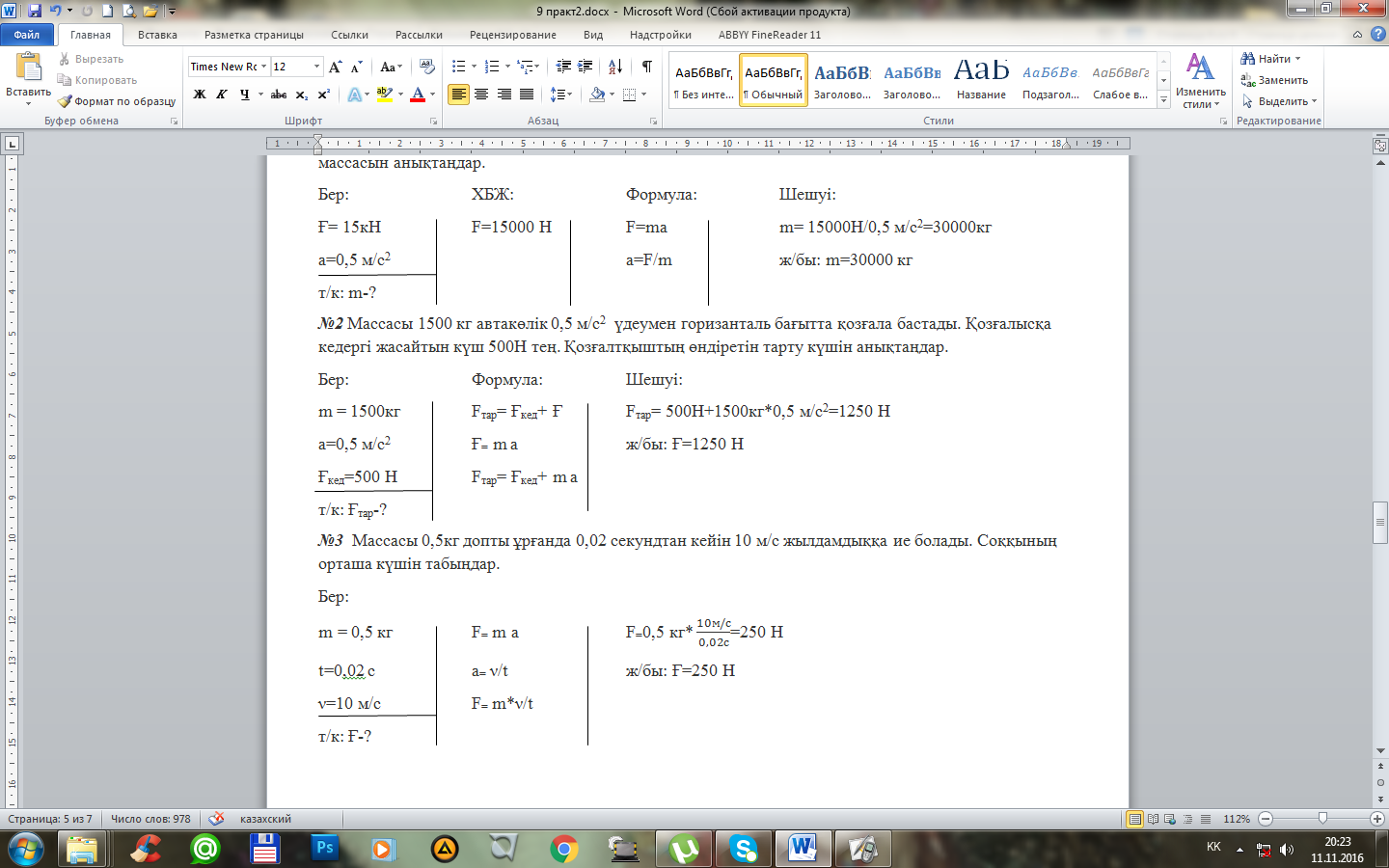 t=0,02 с a= ν/t ж/бы: Ғ=250 Н