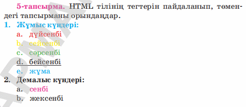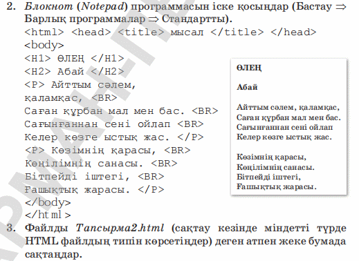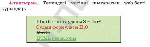 10.4.2.1 web (веб)-парақшаларды әзірлеуде HTML (аш ти эм эл)-тегтерін қолдану |