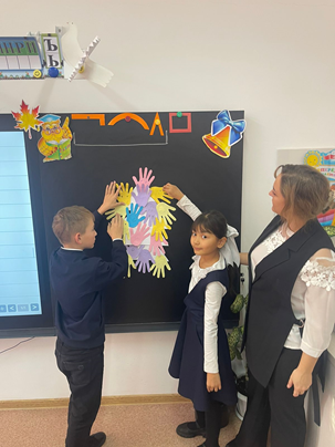 Создание положительного эмоционального настроя. Здравствуйте, дети! Прозвенел звонок, Начинается урок! Хочу вам пожелать удачи и передать свою ладошку с пожеланием . У вас тоже есть на партрах « ладошки», напишите свое пожелание на ладошке и передайте соседу. Актуализация жизненного опыта. Целеполагание. Приём критического мышления «Колоски» - Давайте представим, что мы в поле. Я превращаю вас в маленькие зёрнышки и сажаю в землю. (дети присаживаются). Тёплое солнышко пригрело землю, дождик полил. Зёрнышки росли, росли и стали колосками. (дети встают, поднимают руки вверх). - Колоски тянутся к солнышку (дети протягивают руки вверх). - Сильно припекло солнышко, завяли наши колоски. (дети постепенно опускают сначала: руки, голову, плечи, туловище). - И вот полил дождик, ожили колоски. Снова тянутся они к солнышку. В поле выросли замечательные колоски. Улыбнитесь друг другу. |