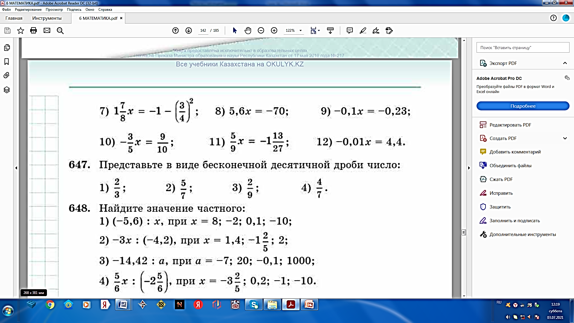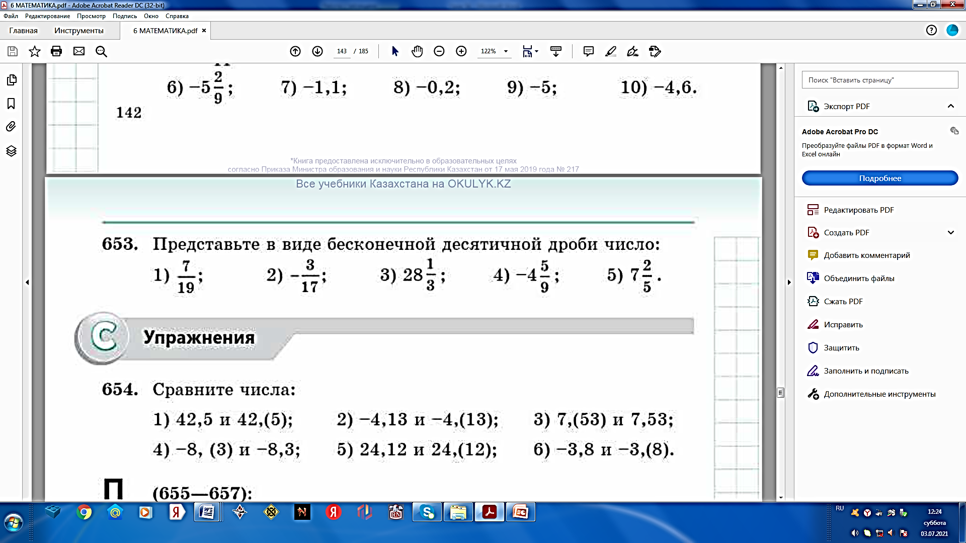 6.1.2.18 распознавать, какие обыкновенные дроби представимы как конечные десятичные дроби; 6.1.2.19 представлять рациональное число в виде бесконечной периодической десятичной дроби; |