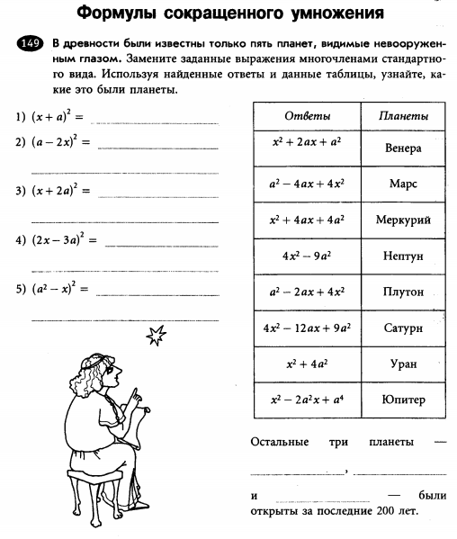 Задание 3 (5 мин) Самостоятельная работа Критерии: -знает и применяет формулы сокращенного умножения - раскладывает алгебраические выражения на множители с помощью формул сокращенного умножения Дескрипторы: -раскладывает многочлен на множители -узнает, какие планеты были известны в древности |