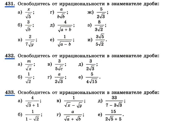 8.1.2.4 освобождать от иррациональности знаменатель дроби; |