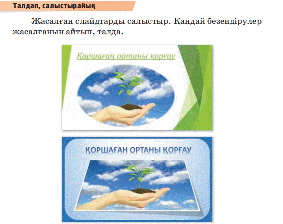 Презентациялар (ортақ тақырыбы: «Қоршаған ортаны қорғау») |