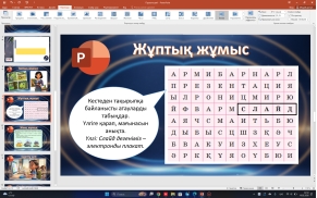 Дескриптор: - слайд құрады; - презентацияға дыбыстар мен анимауия кірістіреді. Дескриптор: -термин сөздерді табады; - анықтамасын түсіндіреді. Дескриптор: - практикалық тапсырманы жеке компьютерде орындайды. Дескриптор: - сұраққа жауап береді “Мадақтау” әдісі “Шапалақ” әдісі Дескриптор: - сұрақтарға жауап береді; - ақиқат/жалған екенін анықтайды; - тест сұрақтарына жауап береді Ди |
