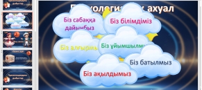 Ұйымдастыру Оқушылармен амандасу. Оқушылардың сабаққа қатысымын түгендеу. Психологиялық ахуал: Мотивациялық сөздер арқылы психологиялық ахуал орнатады