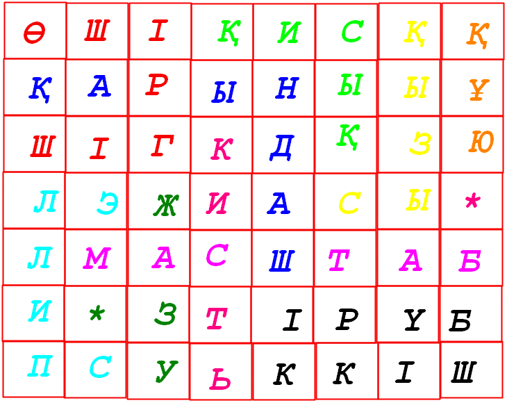 І. Өткен сабақ бойынша ойлан да тап бөлімінде кестеде әр-түрлі түспен,